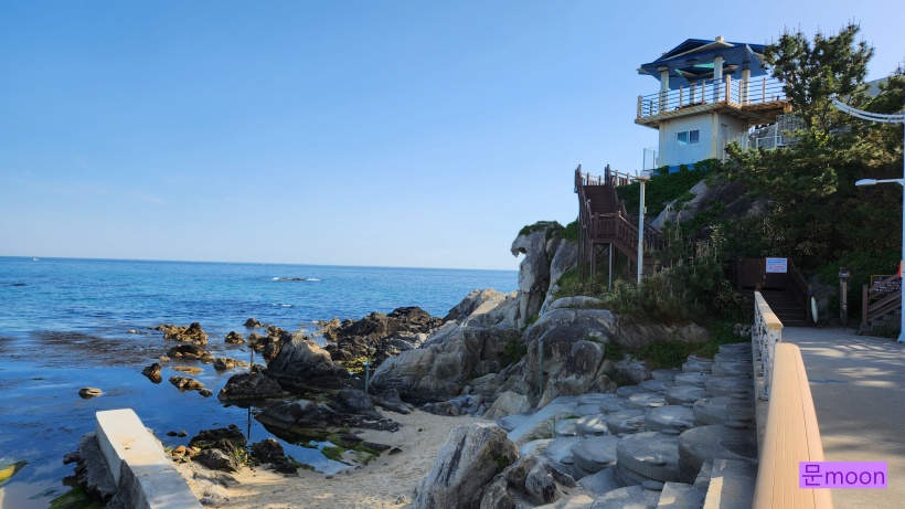 왼쪽엔 해변산책로와 전망대가 있습니다.