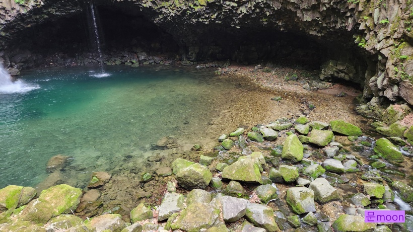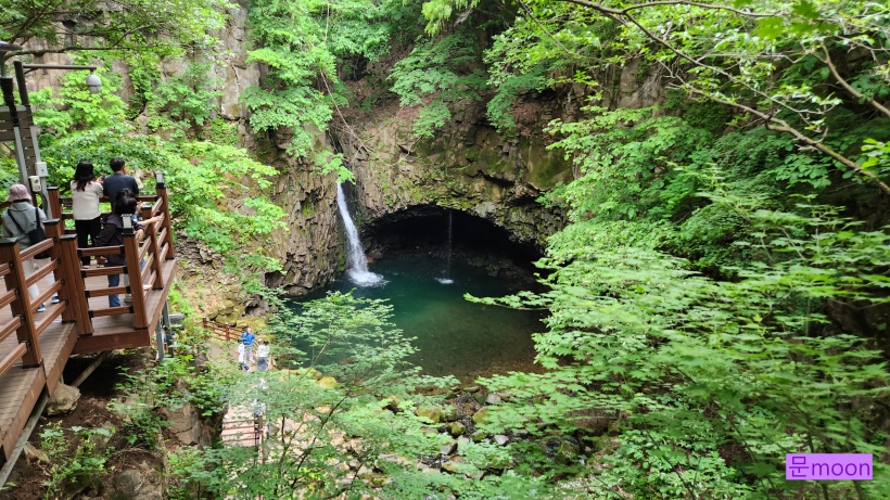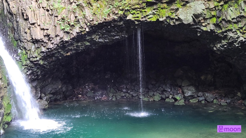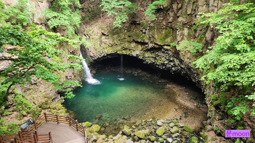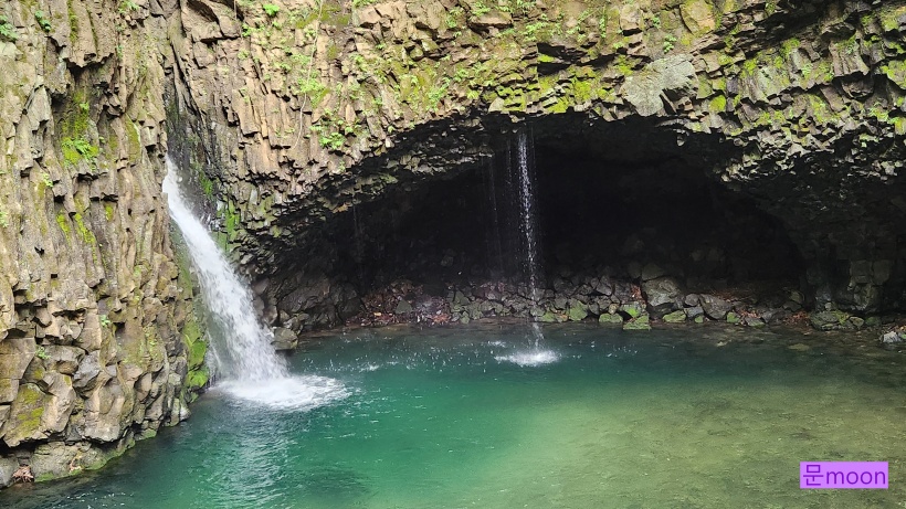 여기는 폭포의 물이 깎아 생긴 하식동굴이 있다네요.