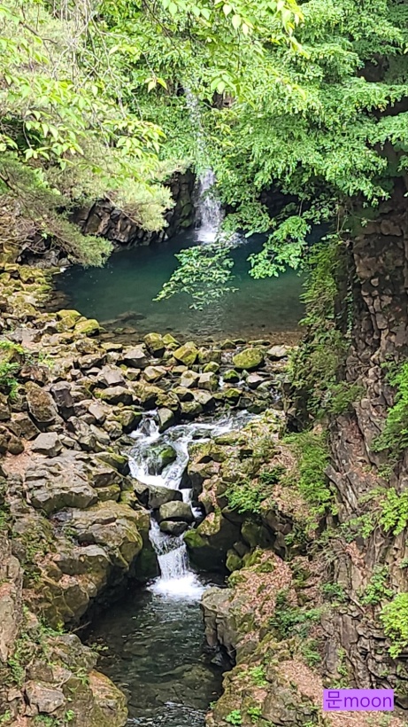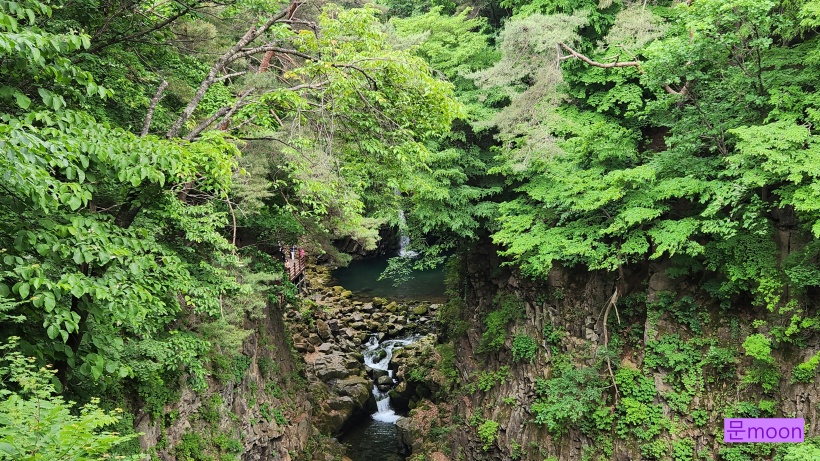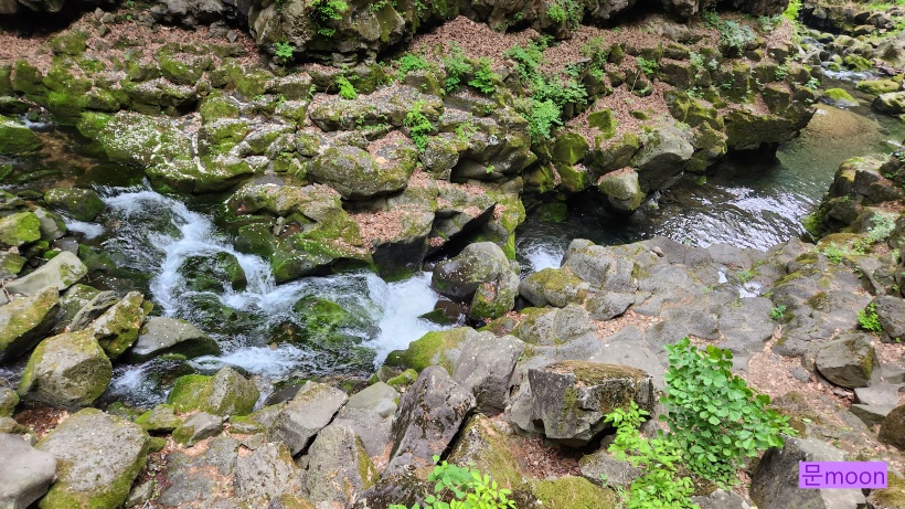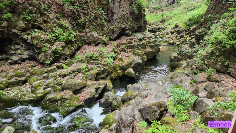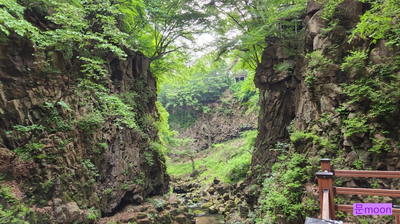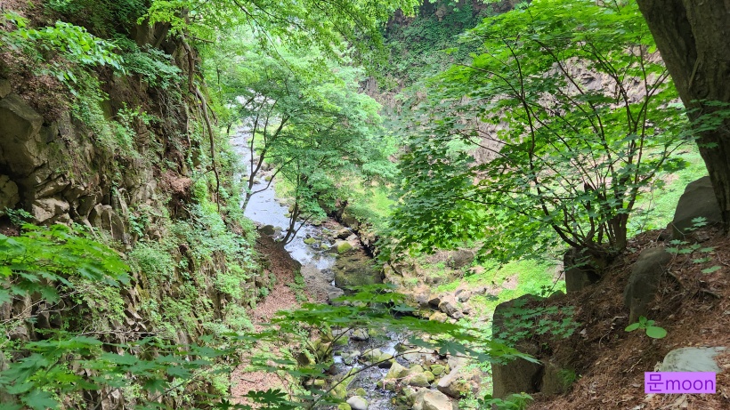 폭포물이 계곡을 지나서 한탄강으로 흘러가고있습니다.