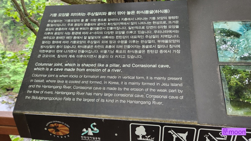 비둘기낭폭포는 주상절리가 뚜렷하고 계속 주상절리바위가 떨어져나오면서 하식동굴이 생긴곳 입니다.