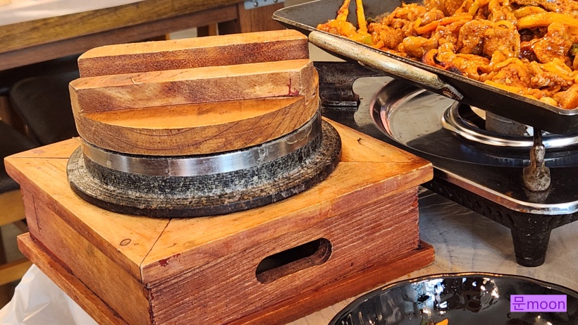 메밀전을 다먹고나니 철판에 고추장더덕불고기가 나왔습니다.