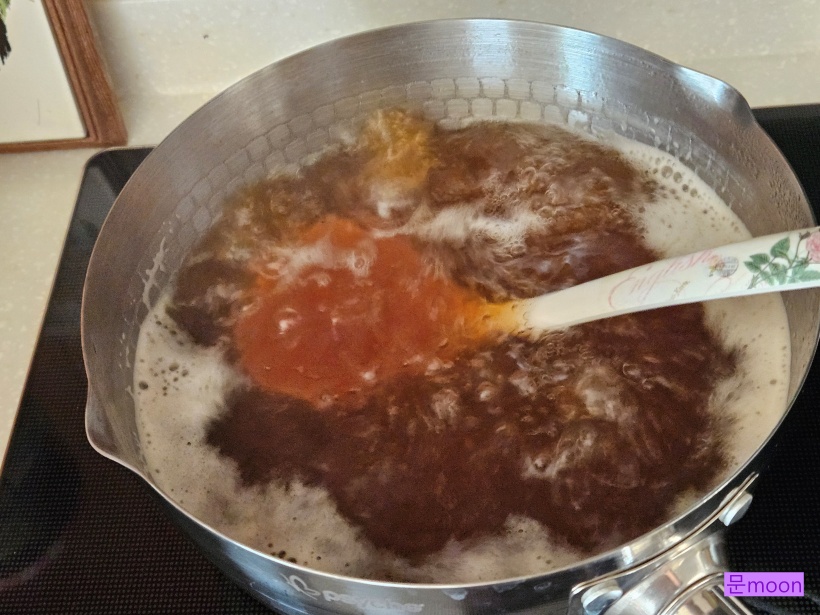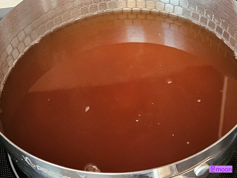 천주머니를 건져내고 3배농축 쯔유와 참치액으로 간을 맞춥니다.
