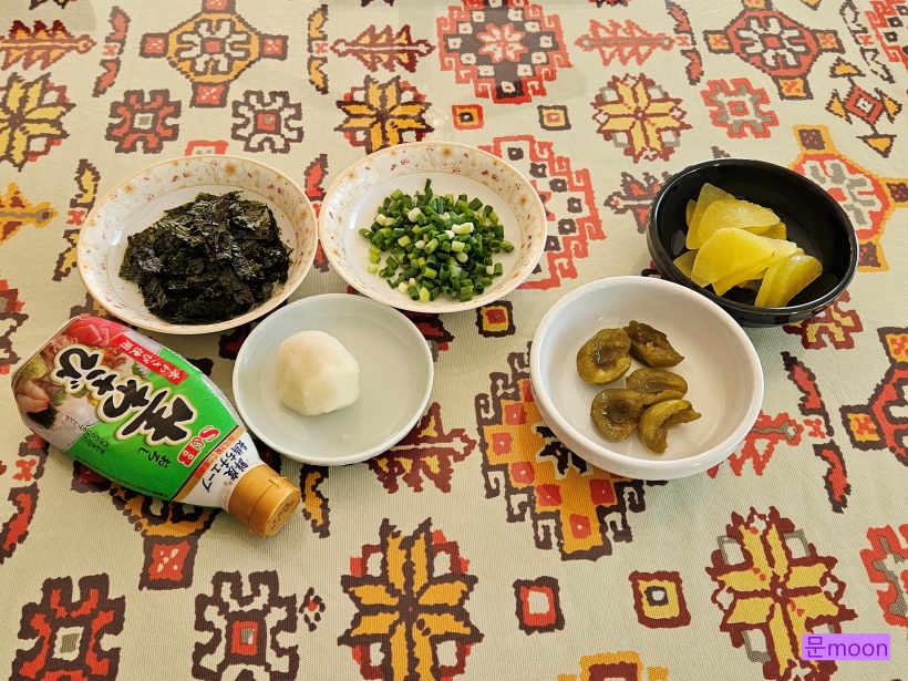 곁들임 반찬으로는 단무지와 매실장아찌 입니다.