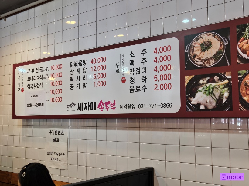 벽에 붙은 메뉴판 인데 우리는 두부전골(1인 1만원) 4인분을 주문했습니다.