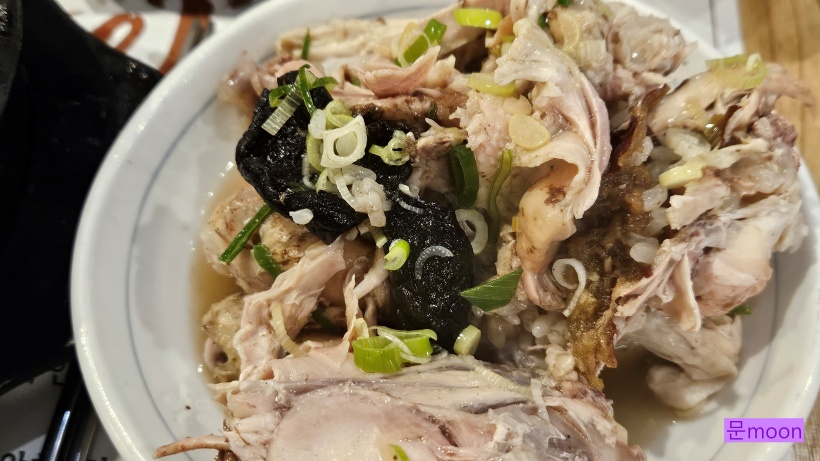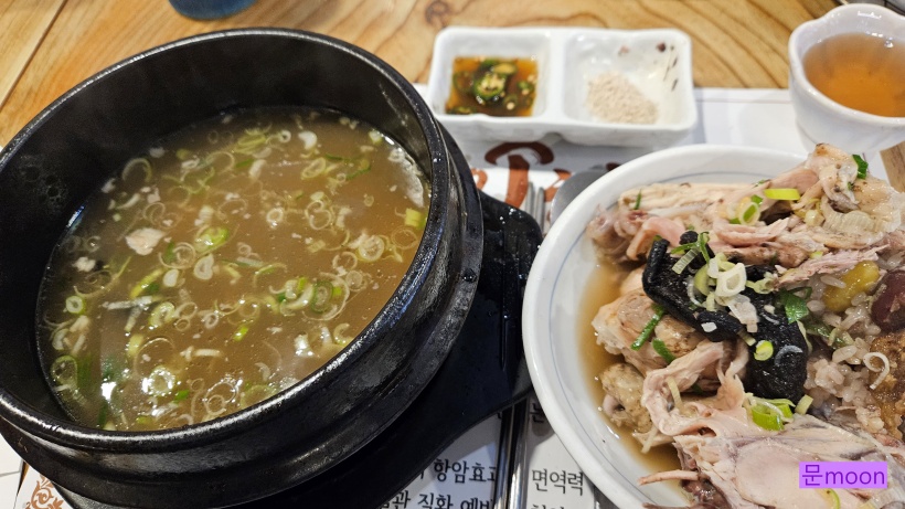 따끈한 국물을 먹어가며 닭고기를 소금에도 간장소스에도 찍어먹었습니다.