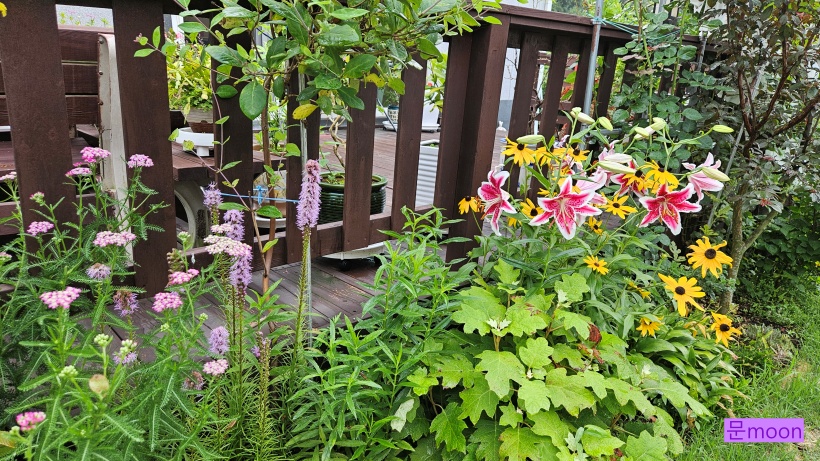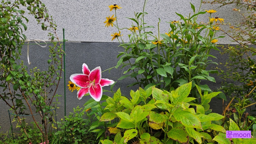 루드베키아만 있어도 이뻤는데 스타게이저 백합이 함께 피니 더 화사해졌네요.