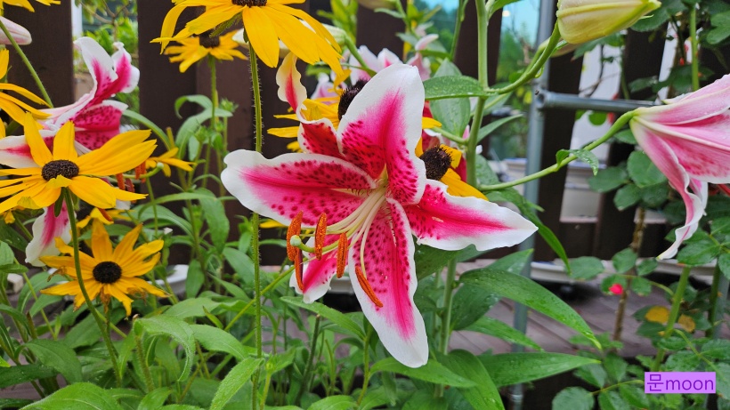 루드베키아와 함께 피고있는 스타게이저 백합 입니다.
