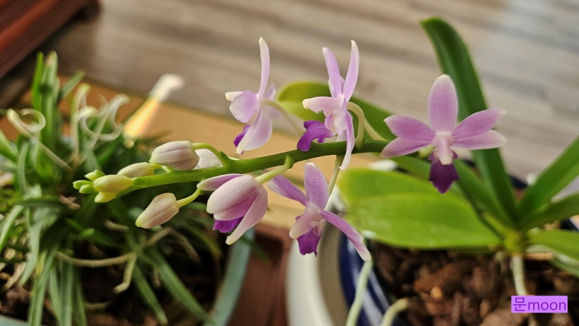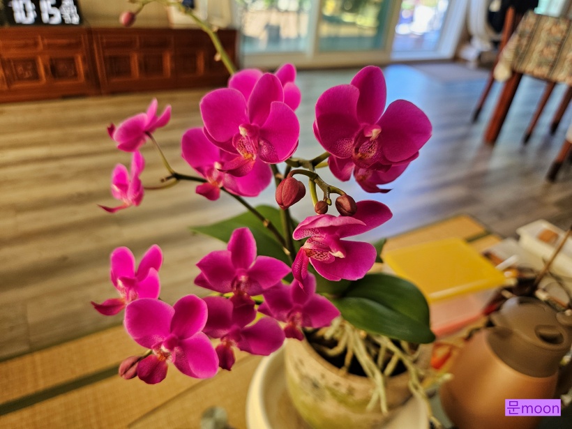미니호접란 만천홍이 4개월째 꽃을 피우고 있는데 뒤따라 미니호접란 블루사파이어가 꽃을 피우고 있습니다.