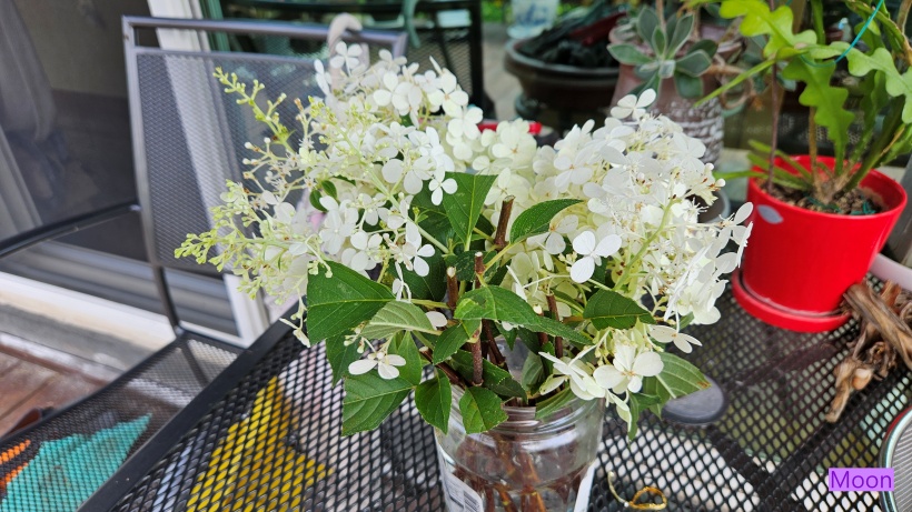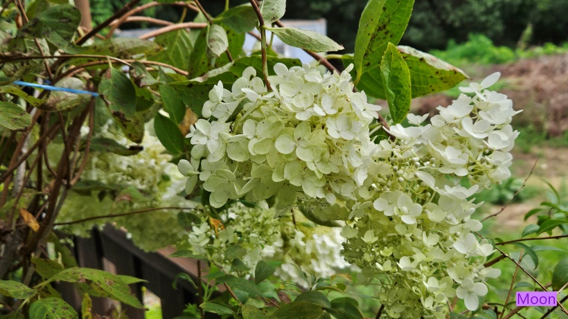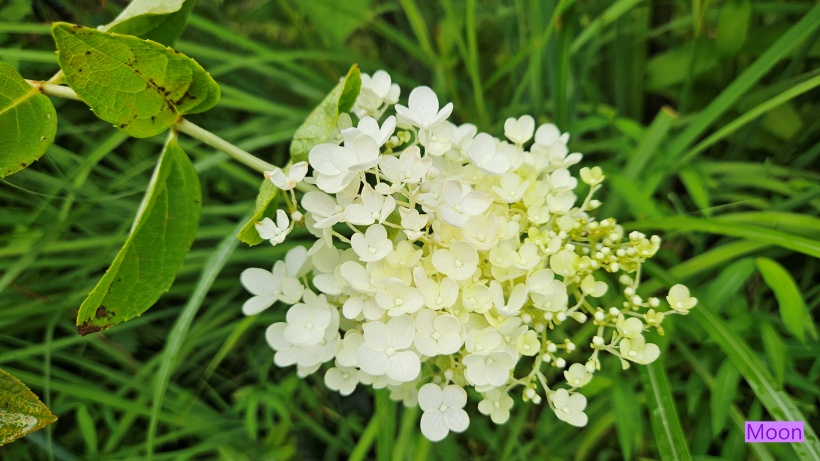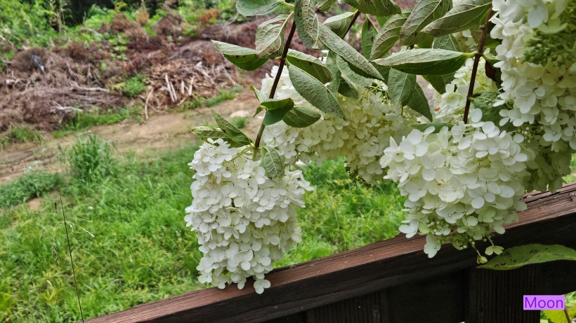 목수국은 새줄기 끝에 커다란 꽃송이를 달아주는데 줄기가 약하다보니 무거운 꽃송이가 늘어지네요.
