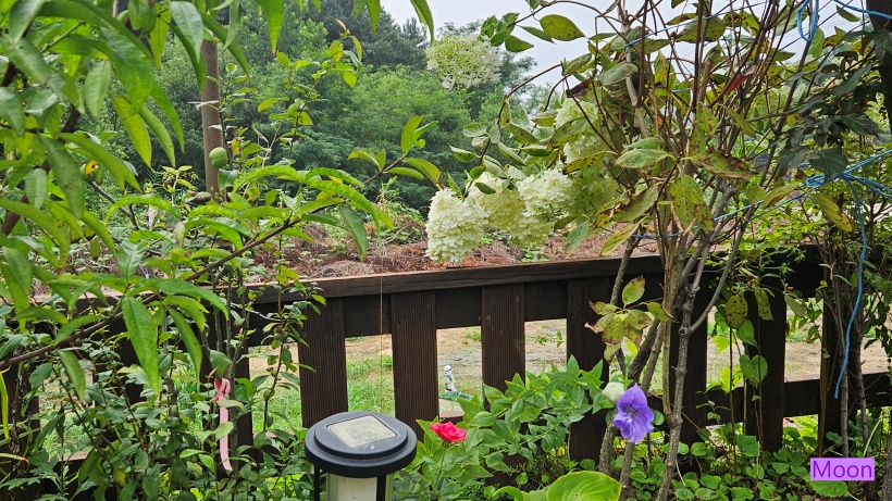 펜스쪽에 심어놔서 꽃을 보기가 좀 어렵습니다. 바깥으로 늘어져서..