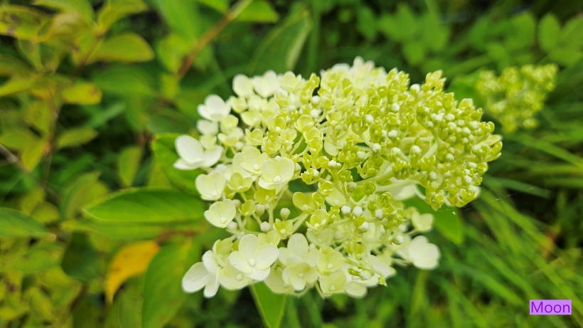 목수국 라임라이트는 연두색으로 피어나서 점차 하얗게 피어납니다.
