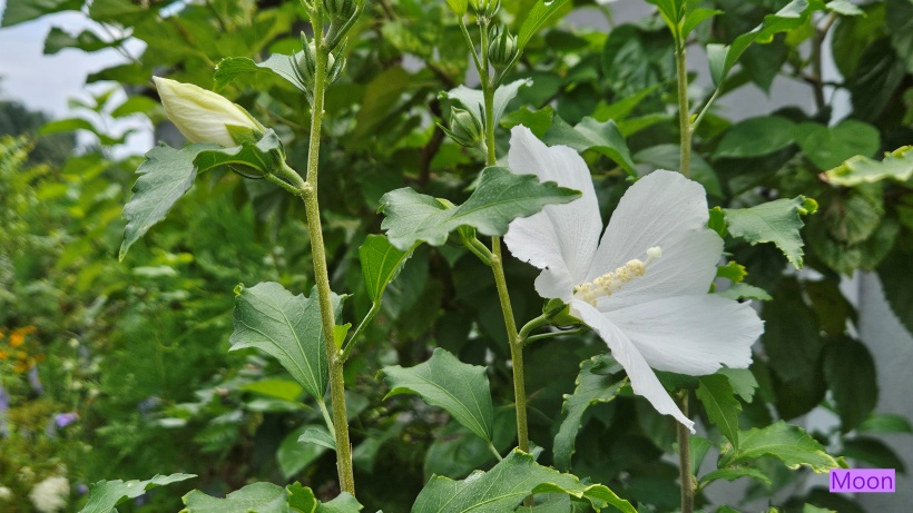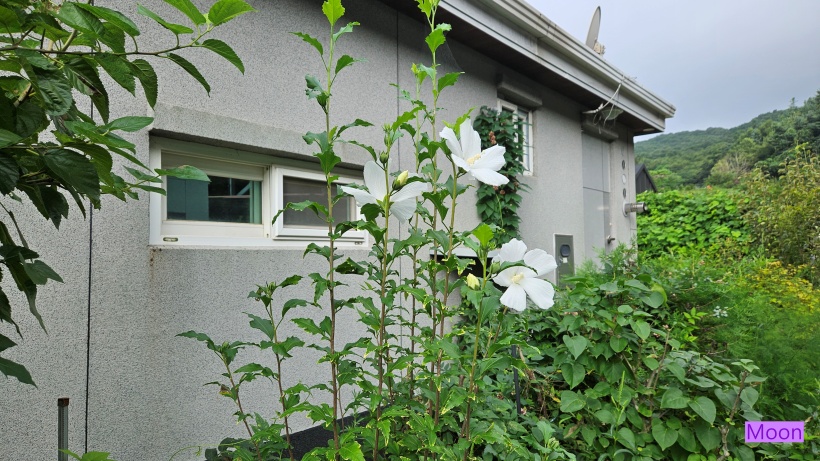 씨앗발아해서 심어준 5년정도 된 배달계 흰무궁화가 있는데 올해는 흰무궁화만 꽃이 피었습니다.