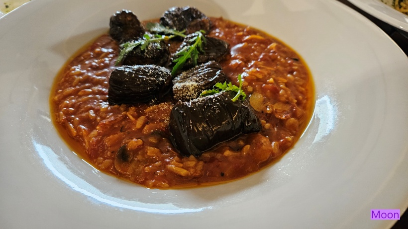 토마토소스에 가지구이가 들어갔습니다. 우리입맛에도 맞았는데 리소토의 양은 많은듯합니다.