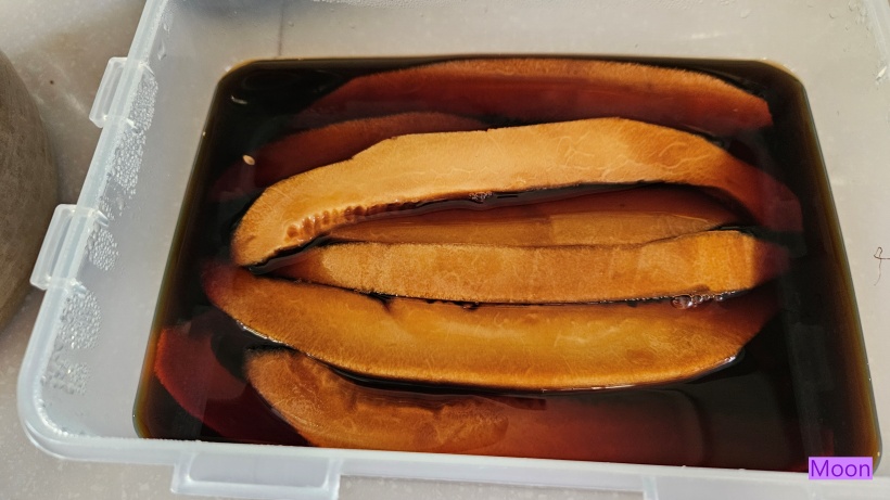 식혀서 부은후 냉장보관해두었던 태국멜론 간장장아찌 입니다.