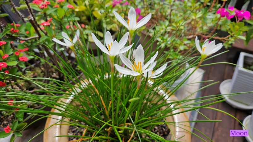 요즘 잦은 비로 제피란서스 칸디다(흰꽃나도샤프란)가 제세상 인듯하네요.
