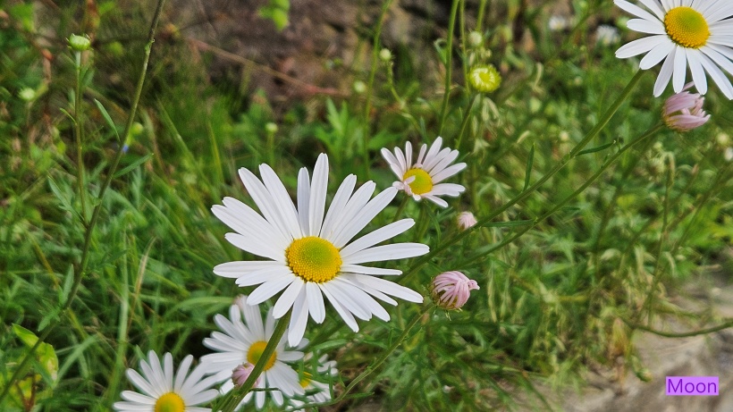 잡초도 이겨낸 축대정원의 구절초는 흰꽃, 연분홍꽃이 섞여핍니다.