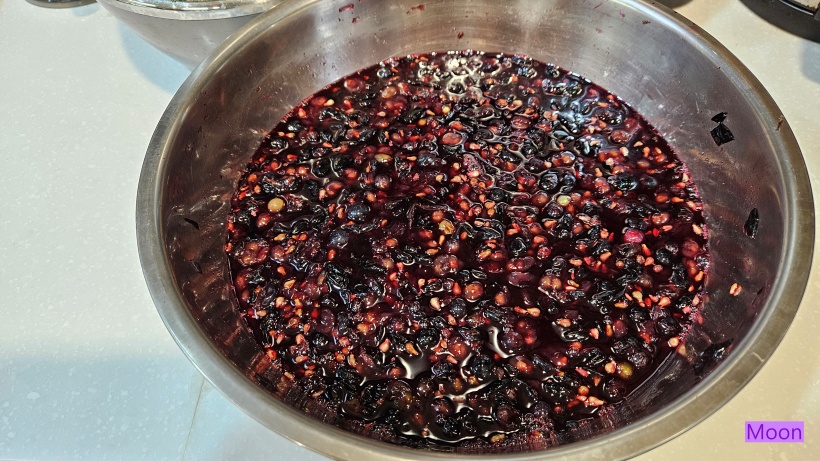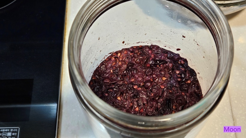 포도알도 다 으깨지고 설탕도 다 녹았습니다.
