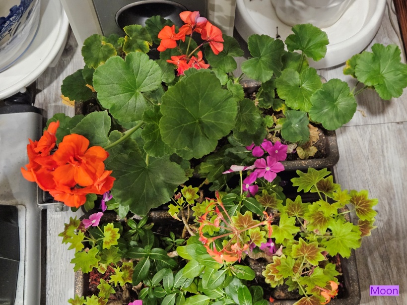 바깥에서 튼실해진 제라늄과 벤쿠버제라늄이 월동을 위해 실내로 들어왔습니다.