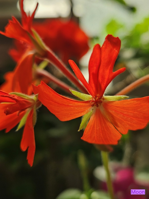 주황색 제라늄은 2송이가 꽃볼을 이루고 있습니다.