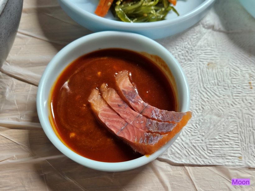 매운탕이 나왔는데 이미 배가불러 국물만 덜어와 맛있게 먹었습니다.