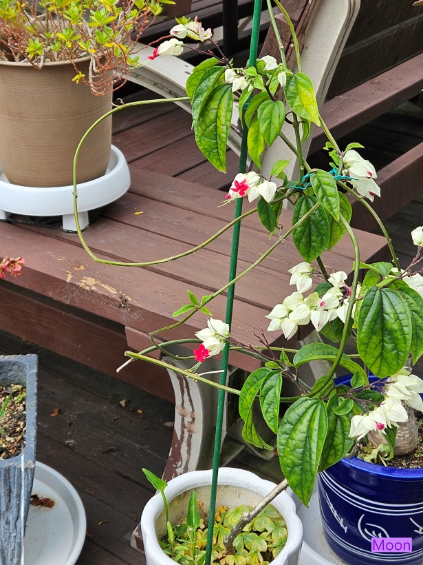클레로덴드롬은 상록덩굴성 관목 인데 새잎이 나면서 가지끝에 꽃망울이 맺히는데
