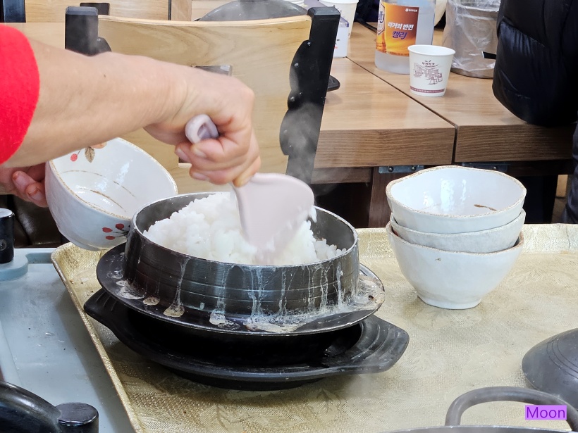 여기는 인원수에 따라 가마솥에 밥을 해서 주시네요.