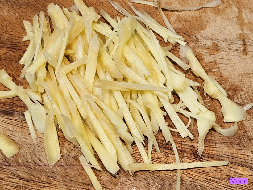 생강채를 되도록 곱게 썹니다.