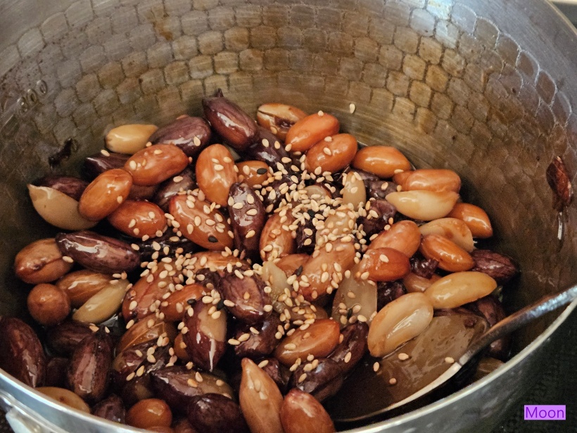 재료 : 생땅콩 한줌, 물, 간장5큰술, 물엿3큰술, 통깨