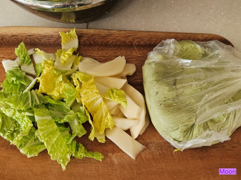 배추, 감자를 썰어두고 수제비반죽도 꺼내어놓습니다.