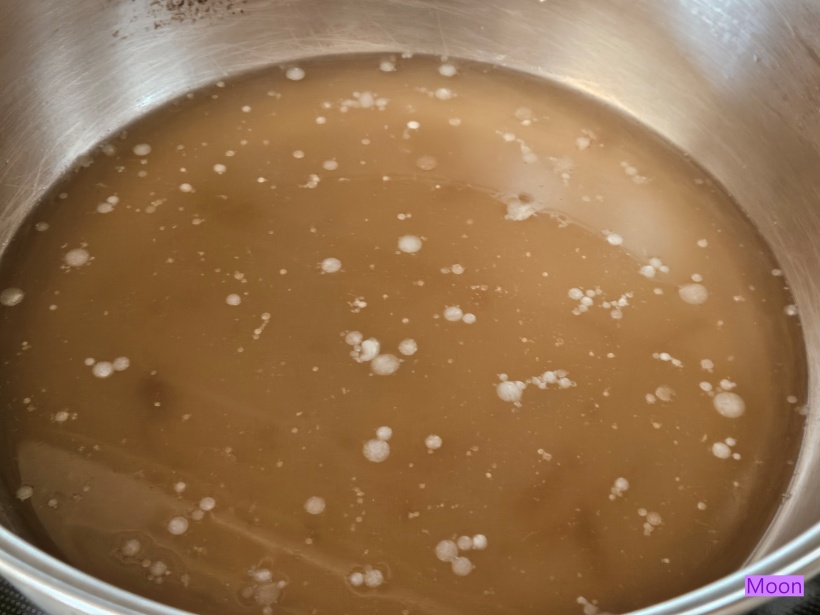 육수는 기름기 걷어내고 냄비에 붓고 나중에 물을 추가하였습니다.