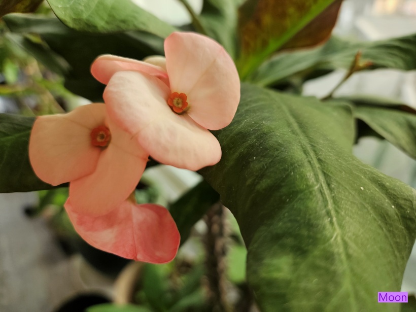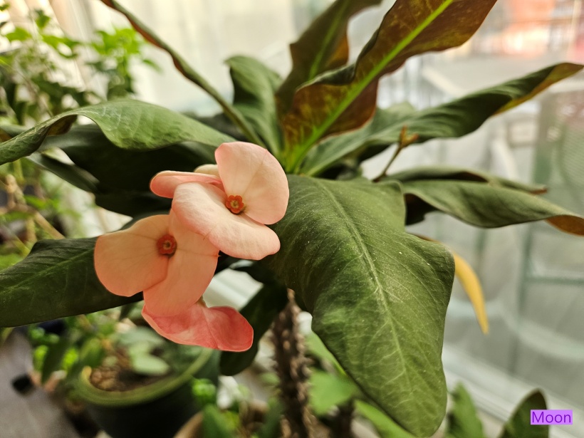 왕꽃기린이 실내월동 중에 꽃색이 연한 꽃을 피웠습니다.