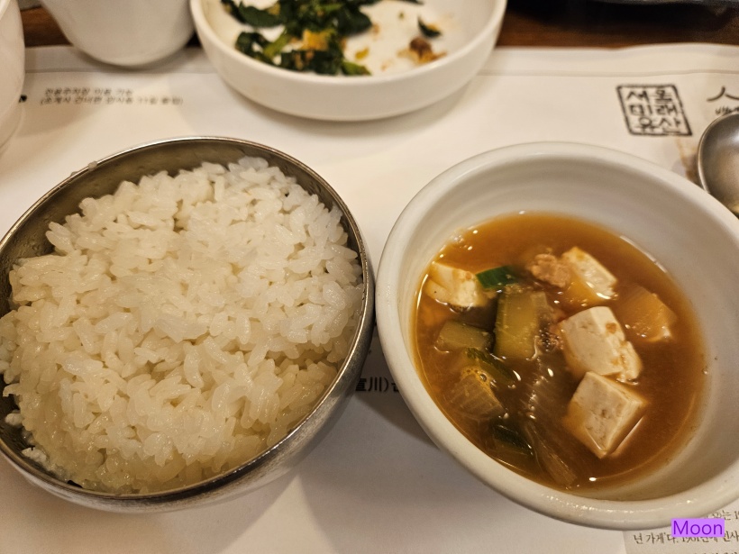 마지막으로 밥공기와 된장찌개가 나왔습니다.
