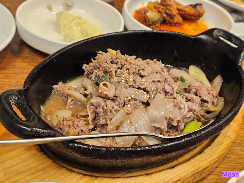 반찬들을 안주삼아 술 한잔 하고있으니 불고기가 나왔습니다.