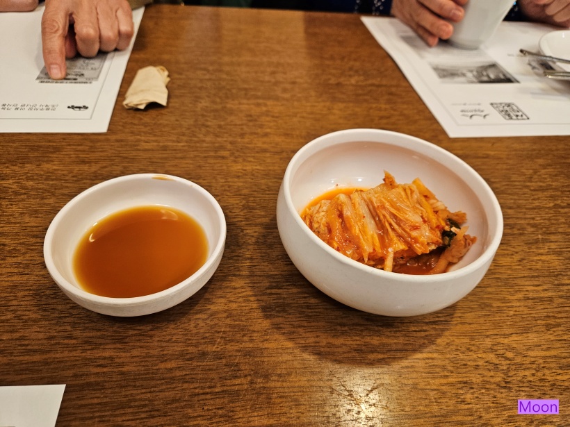 따뜻한 물과 김치와 간장만 세팅이 되어있습니다.