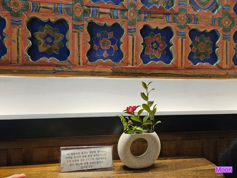 중정을 바라보는 분위기 좋은 테이블도 있었지만 좌식이라..