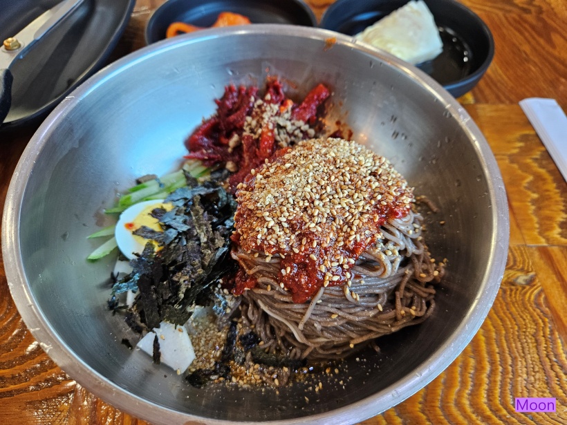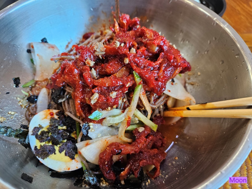 제법 기다렸더니 단체손님 주문건이 다 해결되었는지 회막국수가 나왔습니다.
