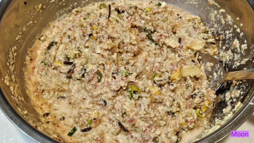 빈대떡은 놔두면 물이 생기기에 모두 부쳐주는것이 좋습니다.