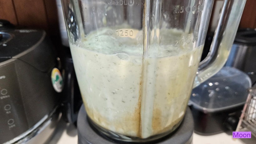 깐녹두를 물기를 제거하고 믹서기에 넣고 물300ml를 넣어 거칠게 갈아줍니다.
