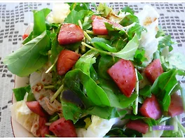 2019/06/15 (1) 썸네일형 리스트형 (루꼴라샐러드) 텃밭 루꼴라 수확하여 만든 샐러드 양평집 텃밭에 씨앗을 뿌려 키워 수확한 루꼴라로 샐러드를 만들어보았습니다. 루꼴라는 이탈리아음식에 많이 쓰이는데 피자의 토핑재료나 파스타에 넣어 요리하기도 하지요. 키가 커져서 억세지않을까 싶더니 생각보다 연해서 샐러드로 해도 좋은것 같습니다. 냉장고 속 재료로 대충 만들어본 샐러드 입니다. 텃밭 루꼴라가 꽃을 피우기 시작했습니다. 재료 : 루꼴라 한줌, 양상추, 햄 한토막, 소스(올리브오일, 발사믹식초, 메이플시럽) 루꼴라를 식초 한두방울 떨어뜨린 물에 깨끗이 씻어 먹기좋게 적당히 잘라줍니다. 햄을 썰어 후라이팬에 구워주었습니다. 끓는물에 데쳐도 됩니다. 접시에 양상추와 루꼴라를 적당히 올려줍니다. 구워준 햄도 올리구요.. 올리브오일, 발사믹식초, 메이플시럽(혹은 올리고당)을 넣어 소스를 만들어줍니다... 이전 1 다음