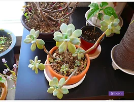2020/12/09 (1) 썸네일형 리스트형 (화분식물) 3년째 작은 화분에서 자라고있는 석연화 다육이들은 아주 작은 포트분에서도 약간의 물만 먹고도 불평없이 잘자라고 번식도 잘하네요. 석연화는 오래전부터 키우던건데 3년전 실내월동 시키면서 요 작은 화분에 몇줄기 삽목을 했는데요 3년째 분갈이 하지않고도 잘자라고 있습니다. 줄기들은 길어져서 목질화가 되었구요.. 겨울엔 실내월동해도 다른계절엔 뜨거운 햇살 아래 두었는데 뭔일인지 아직 꽃도 못피웠답니다. 영양부족인지.. 그래도 짱짱한 잎장이 이쁘지요? 가끔 한번씩 목축일정도로 물을 찔끔 주는데요.. 실내는 햇빛이 부족하여 웃자라기 쉽습니다. 물을 많이 주면 웃자라기에.. 아래는 떨어진 잎장에서 자구가 발아되어 바글바글.. 그와중에 옆 포트에서 떨어진 천손초도 2개쯤 보이네요. 석연화 학명: Pachyveria Pachyphytodies 원산지: 멕시코.. 이전 1 다음