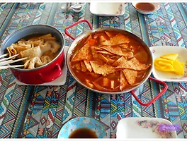 요즘은 집콕하면서 삼시세끼를 집에서 먹다보니 점심은 이런저런 다양한 분식으로 돌아가며 해먹게 됩니다. 이웃집에서 현미로 가래떡을 뽑아 좀 가져왔길래 말랑한 가래떡을 그냥도 먹고.. 남은걸로 떡볶이를 해볼까 싶었지요. 마침 어묵도 냉동실에 있어서 해동해서 꼬치어묵탕도 하고 떡볶이에도 넣었습니다. 한끼 점심식사로 충분한 꼬치어묵과 떡볶이 였습니다. 재료 : 멸치육수(+쯔유), 어묵(꼬치용4장, 떡볶이용2장), 현미가래떡2개, 고추장2큰술, 설탕2큰술, 무발효액2큰술, 후추, 무 한토막, 양파1/4개, 대파1대, 당근 한토막, 간장소스(쯔유+물+와사비) 먼저 멸치육수를 끓입니다. 멸치육수가 우러나면 건더기를 건지고 간장 대신 쯔유로 간을 맞춰줍니다. 쯔유가 없으면 간장(국간장, 양조간장)으로 간을 맞춥니다. ..